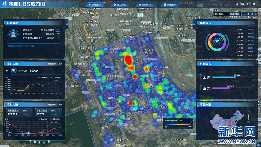 为实现特定区域内人流动态监测,公安榆阳分局科技应用智能化孵化实验室创新引入“LBS人群热力分析平台”。该平台可显示特定区域内实时人数、人群密度、人数增减等信息,并对人员的年龄、性别、来源地分布情况进行画像,为常态化巡逻防控、重大活动安保提供科学的数据依据,推动大型活动安保由“汗水警务”向“智慧警务”转型。