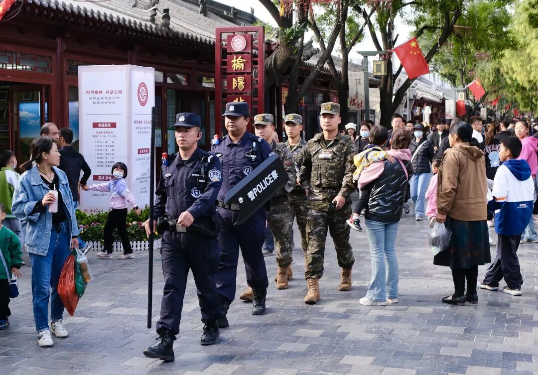 榆林公安严密社会面整体防控,推行见警察、见警车、见警灯“三见警”巡防模式,按照社区民警控面、交巡警巡线、义警队伍保点、无人机巡域方式,全力提升广场车站、商超夜市等人员密集场所的见警率、管事率。2024年全市街面警情同比下降34.6%。“三见警”巡防已成为榆林公安亮丽的名片。